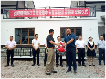 2017年6月30日上午11时,合江县尧坝镇易地扶贫搬迁集中安置示范点项目举行了安置房交钥匙仪式。合江县委、县政府、县级有关部门、尧坝镇政府、市文旅投、参建单位有关负责人参加了仪式。41栋安置房钥匙在建设施工单位、市文旅投和尧坝镇政府之间进行了交接。在中国共产党96周岁生日来临之际,以此特殊方式向党的生日献礼。
